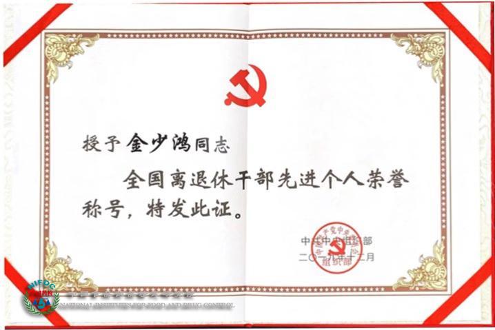 當晚,在新聞聯(lián)播上看到這一幕的中國食品藥品檢定研究院退休干部金少鴻并沒(méi)有意識到這一新聞跟他有什么關(guān)聯(lián),直到第二天上班他收到了朋友們祝賀——他是那450位先進(jìn)個(gè)人之一,金少鴻獲得了全國離退休干部先進(jìn)個(gè)人榮譽(yù)稱(chēng)號。