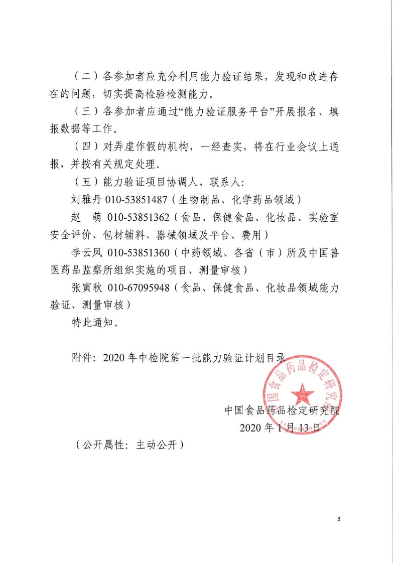 關(guān)于組織開(kāi)展2020年第一批能力驗證計劃的通知