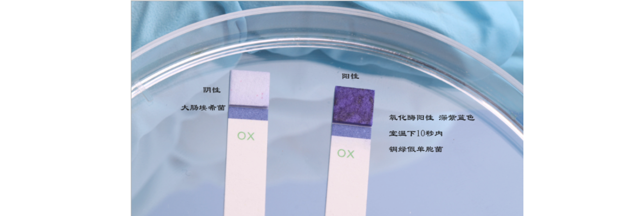 原理:銅綠假單胞菌含有細胞色素氧化酶,該酶是細胞色素呼吸酶系統的最終呼吸酶。具有氧化酶的細菌,首先使細胞色素C氧化,再由氧化型細胞色素C使對苯二胺氧化,生成有色(如粉紅色或紫紅色)的醌類(lèi)化合物。