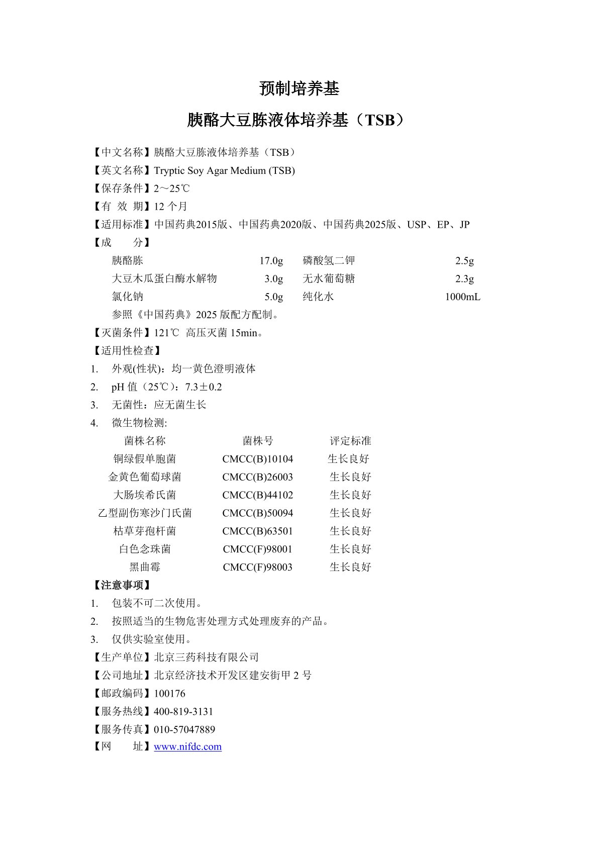 中文名稱(chēng) | 胰酪大豆胨液體培養基(TSB) |